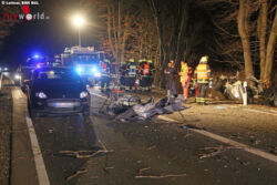 Die Retter konnten jedoch nur noch den Tod des Mannes feststellen, der in seinem stark verformten Fahrzeug eingeklemmt worden war und mit dem technischen Rettungssatz befreit werden musste. Da in der zunächst recht unübersichtlichen Lage nicht klar war, ob noch weitere Menschen im Auto waren oder sogar noch ein zweites Fahrzeug beteiligt war, suchten die Einsatzkräfte die Umgebung, darunter auch ein angrenzendes Feld mit Wärmebildkamera und Lampen ab, konnten aber bis auf herausgerissene und herumgeschleuderte Fahrzeugteile des Suzuki nichts finden. Sie kümmerten sich unter anderem um einen betroffenen jungen Autofahrer, der als Ersthelfer an die Unfallstelle gekommen war.