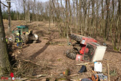 Bei der Erkundung am Einsatzort stellte sich heraus, dass einem Forstarbeiter im Zuge eines Wendemanövers mit einem teilweise beladenen Anhänger der Traktor umkippte. Der Lenker blieb unverletzt. Der Anhänger verkeilte sich mit dem Traktor und musste vom Zugfahrzeug getrennt werden. Gemeinsam mit der verständigten Forstverwaltung konnte dann der gekippte Traktor mit einer Forstseilwinde wieder auf die Räder gestellt werden.