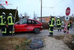 Oö: Auto auf Bahnübergang in Kirchham von Traunseetram erfasst → zwei Verletzte
