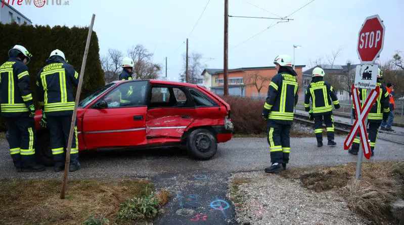 Oö: Auto auf Bahnübergang in Kirchham von Traunseetram erfasst → zwei Verletzte