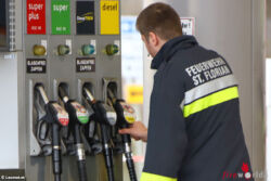 ST. FLORIAN (OÖ): Die Feuerwehr stand Montagnachmittag, 4. März 2019, bei einem größeren Dieselaustritt an einer Tankstelle in St. Florian (Bezirk Linz-Land) im Einsatz. Ein Auto ist an einer Tankstelle nach dem Tankvorgang mitsamt dem Zapfhahn im Tank weggefahren.