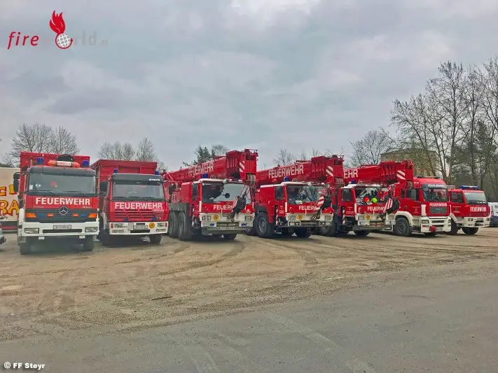 VÖCKLABRUCK (OÖ): Auf Einladung der Freiwilligen Feuerwehr Vöcklabruck begaben sich fünf Mann des technischen Zuges der Freiwilligen Feuerwehr Steyr mit Kran Steyr und Last 3 mit Krancontainer am 02.03.2019 nach Vöcklabruck zu einem Übungstag.