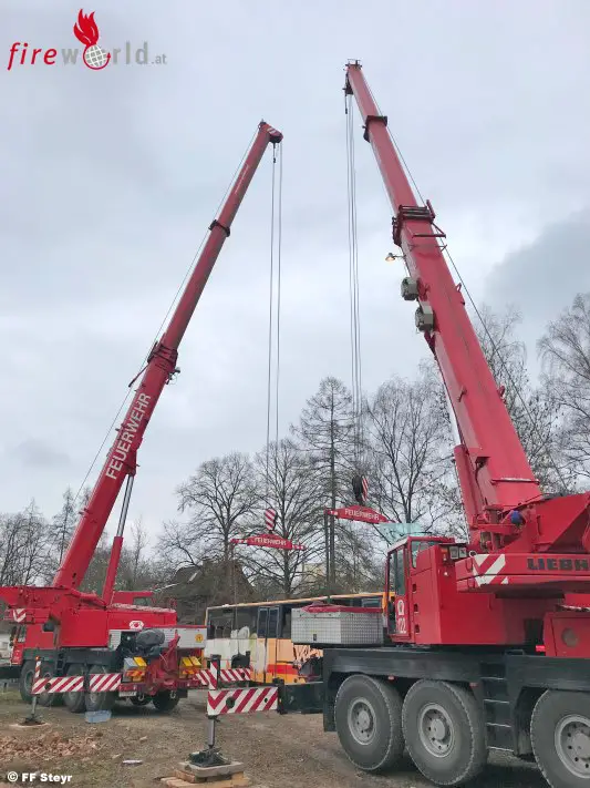 VÖCKLABRUCK (OÖ): Auf Einladung der Freiwilligen Feuerwehr Vöcklabruck begaben sich fünf Mann des technischen Zuges der Freiwilligen Feuerwehr Steyr mit Kran Steyr und Last 3 mit Krancontainer am 02.03.2019 nach Vöcklabruck zu einem Übungstag.