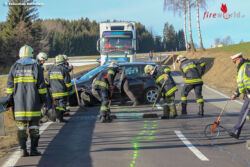 SCHENKENFELDEN (OÖ): Am Vormittag des 4. März 2019 wurden die Feuerwehren Schenkenfelden und Bad Leonfelden zu einem Verkehrsunfall mit eingeklemmter Person alarmiert. Eine 33-jährige sowie eine 52-jährige Fahrzeuglenkerin kollidierten auf der Böhmerwald Landesstraße B38 im Bereich Königschlag.