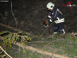 PINKAFELD (BGLD): Am Abend des 04.03.2019 wurde die Feuerwehr Pinkafeld mittels Rufempfänger zum Freimachen von Verkehrswegen (Baum über Straße) auf die L235 zwischen Pinkafeld und Oberschützen alarmiert. Den ganzen Abend und die ganze Nacht zog ein Sturm mit heftigen Windböen über das Land.