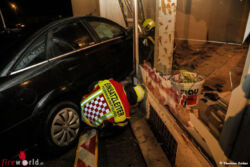 KNITTELFELD (STMK): Zu einem Verkehrsunfall im Stadtgebiet von Knittelfeld wurden Feuerwehr, Rotes Kreuz und Polizei in der Nacht auf den 9. März 2019 alarmiert. Ein Pkw-Lenker verlor gegen 02:00 Uhr die Kontrolle über sein Fahrzeug und krachte frontal in die Auslagenfront eines ehemaligen Geschäftes.