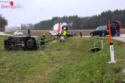 Oö: Pkw rammt Pumpstation und überschlägt sich in ein Feld