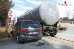 OBERWART (BGLD): Am Montag, dem 11.03.2019, wurde die Feuerwehr Oberwart zu einer Fahrzeugbergung auf einem Bahngleis nahe der kath. Kirche alarmiert. Ein Güterzug hatte einen Pkw gerammt.