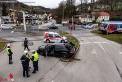 PUCHENAU (OÖ): Einsatz für den Rettungshubschrauber C10 am 11. März 2019, nachdem der Lenker eines Pkw in Puchenau trotz roter Ampel einen Bahnübergang überfahren wollte und vom Zug erfasst wurde.