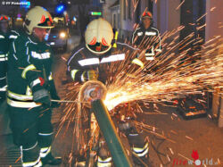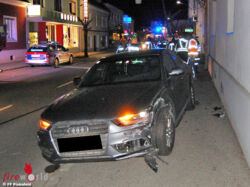 PINKAFELD (BGLD): Am Abend des 11.03.2019 wurde die Feuerwehr Pinkafeld mittels Rufempfänger zu einer Fahrzeugbergung „Pkw auf Gehsteig“ in die Hauptstraße alarmiert. Das Fahrzeug war vermutlich aufgrund eines technischen Gebrechens von der Fahrbahn abgekommen, touchierte eine Straßenlaterne sowie eine Hausmauer und kam am Gehsteig zum Stehen.