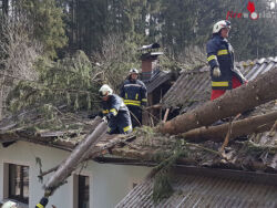 LASBERG (OÖ): Zu einem weiteren Sturmeinsatz wurde die FF Lasberg am Montagvormittag – 11.03.2019 – um 09:44 Uhr in die Ortschaft Siegelsdorf alarmiert. Zusatzinfo: „zwei Bäume auf Hausdach“