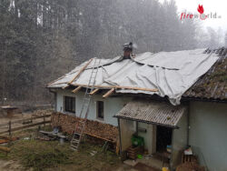 An der Einsatzstelle wurde unser Einsatzleiter OBI Waldmann Martin vom Besitzer empfangen. Nach der Lageerkundung wurde klar, dass sich dieser Einsatz etwas schwieriger darstellt, als vorher angenommen. Mittels Motorkettensäge und Unterstützung eines Holzrückewagen wurden die Bäume schließlich entfernt. Anschließend wurde das stark in Mitleidenschaft gezogene Dach mit Planen abgedeckt, um vor weitere Schäden durch die bereits eingetretenen Niederschläge zu schützen.