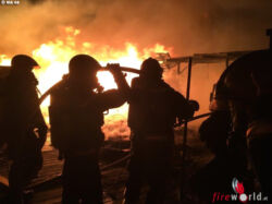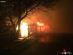Mehrere Hütten mussten gewaltsam geöffnet und das Brandgut mittels Ausräumhaken zerteilt werden. Gasflaschen wurden aufgefunden, ins Freie gebracht und gekühlt. Durch Zumischung von Löschschaum konnte der Brand abgelöscht werden.