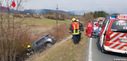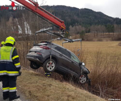 Zusätzlich wurde die Unfallstelle abgesichert sowie ein Brandschutz aufgebaut,. Da bereits Betriebsmittel austraten, wurde der Pkw im Auftrag der Polizei mittels Bergekran aus dem Graben gehoben und auf der Fahrbahn gesichert abgestellt, der Arbö übernahm die Abschleppung des Fahrzeuges. Glücklicherweise hatte sich der Pkw nicht überschlagen.