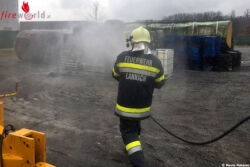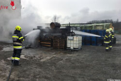 Die ersteintreffende Feuerwehr am Einsatzort wurde bereits vom Personal des Unternehmens erwartet und in die Lage eingewiesen. Der Brand wurde mit Feuerlöschern bereits eingedämmt, somit bestand die Aufgabe der Feuerwehren in den (Nach-)Löscharbeiten, der Kontrolle mittels Wärmebildkamera und dem Kühlen des dort verwendeten Betriebsstoffes.