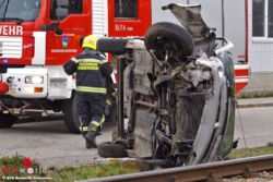 Dabei wurde der Pkw (Dacia Logan) auf der rechten Fahrzeugseite von der in Richtung Baden fahrenden Triebwagengarnitur erfasst und weggeschleudert. Durch den Aufprall überschlug sich das Fahrzeug mit den beiden Insassen und kam seitlich liegend neben den Geleisen zum Stillstand.