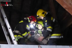 Nö: Feuerwehr holt Katze aus 9 m Höhe unter dem Dachgiebel