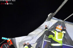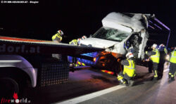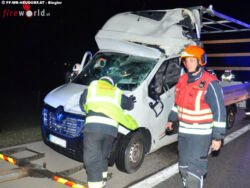 Der unverletzte Lenker konnte sein Fahrzeug selbst verlassen und verständigte die Einsatzkräfte. Die um 00:48 Uhr alarmierte Freiwillige Feuerwehr Wiener Neudorf rückte mit dem „Technischen Zug“ zur Lkw-Bergung auf die Autobahn aus. Am Unfallort bargen die Wiener Neudorfer Feuerwehrmänner nach Entfernung der beschädigten Plane das Unfallfahrzeug mit der Hubbrille des Abschleppfahrzeuges.