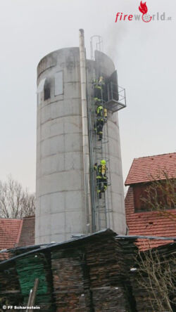 SCHARNSTEIN (OÖ): Am Montagfrüh, 18.03.2019 wurden die Feuerwehren des Pflichtbereiches Scharnstein (Bäckerberg, Scharnstein, Viechtwang) um 06:18 Uhr zu einem Gewerbebrand in die Grubbachstraße alarmiert. In einem Drechslereibetrieb kam es im Bereich der Filteranlage vom Sägespäne-Silo zu einer Verpuffung.