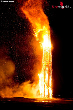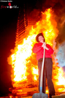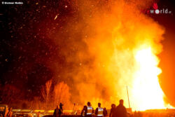 Feuerwehrkommandant Dietmar Hollenstein beschreibt die Lage: „Nach dem Anzünden hat sich die ganze Glut über einen Werkstättentrakt gezogen. Alle Einsatzkräfte mussten sehr schnell zusammengezogen werden, um mit einem gehörigen Wassereinsatz alle Glutpartikel in der Luft möglichst rasch abzulöschen. Also, am Anfang eine richtig hektische Viertelstunde, aber ja, es hat dann geklappt und soweit ist alles unter Kontrolle gekommen.“ Zum Funkenfest kamen nach Schätzungen über 10.000 Besucher. Der Funken war 60 Meter hoch und soll in den nächsten Tagen offiziell als größtes Lagerfeuer der Welt bestätigt werden.
