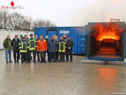 Als Highlight dieses Tages wurde durch die Feuerwehrkameraden aus dem Landkreis Verden eine Besichtigung der Realbrandausbildungsanlage Dräger Fire 8000 organisiert. Die ca. 10 minütige Fahrt zur Feuerwehrtechnischen Zentrale in Verden wurde in Fahrgemeinschaften vorgenommen und zwei ausgebildete Kameraden stellten die Anlage, welche im Oktober 2018 eingeweiht wurde, ausführlich vor. Den interessierten Feuerwehröffentlichkeitsarbeitern wurde sichtlich warm, als dann noch ein Flash-Over beim Gruppenfoto demonstriert wurde.