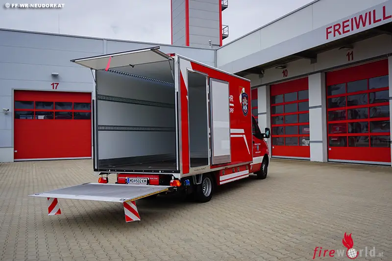 WIENER NEUDORF (NÖ): Anfang März 2019 erhielt die Freiwillige Feuerwehr Wiener Neudorf ein neues Versorgungsfahrzeug. Wie der Name bereits vermuten lässt, dient das Fahrzeug vorwiegend zum Transport von feuerwehrtechnischer Ausrüstung (z.B.: Unterwasserpumpen oder großen Mengen an Ölbindemittel) an die Einsatzstelle.