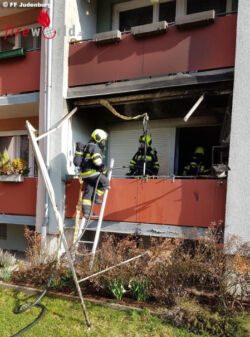 JUDENBURG (STMK): Am 20.03.2019 gegen 08.30 Uhr wurden die Feuerwehr der Stadt Judenburg und die Betriebsfeuerwehr Stahl Judenburg zu einem Brand auf einem Balkon in einem Mehrparteienhaus gerufen. Am Einsatzort eingetroffen, konnte der Einsatzleiter einen massiven Brand im Bereich des Balkons im Erdgeschoß feststellen.