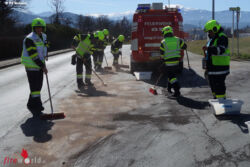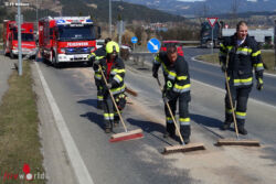 Die Freiwilligen Feuerwehren Knittelfeld und Kobenz wurden um 11.14 Uhr zu diesem Einsatz alarmiert und gemeinsam mussten sie das ausgeronnene Öl mit 70 kg Ölbindemittel binden und wieder aufkehren. Gegen 12.30 Uhr war der schweißtreibende Einsatz beendet und die 18 Kameraden der beiden Wehren konnten wieder ins Rüsthaus einrücken. Von den Feuerwehren wird das kontaminierte Ölbindemittel im Anschluss einer fachgerechten Entsorgung zugeführt.