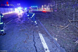 WELS (OÖ): Die Feuerwehr musste in der Nacht auf Samstag, 23. März 2019, in Wels-Schafwiesen nach einem Verkehrsunfall die Wiener Straße von Ästen und Erdreich befreien.