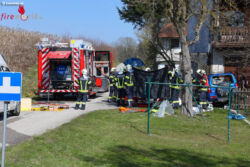 PENNEWANG (OÖ): Zwei Verletzte forderte Samstagvormittag, 23. März 2019, ein Verkehrsunfall in Pennewang (Bezirk Wels-Land). Ein Auto ist aus bisher unbekannter Ursache durch einen Vorgarten gegen eine Mauer gefahren.