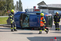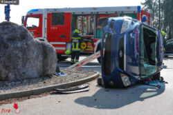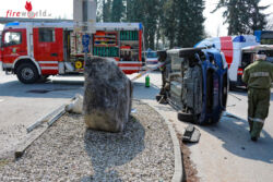 Oö: Stein übersehen → Auto bei Unfall in Hörsching umgekippt