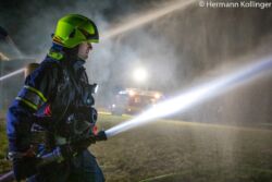 Die Zusammenarbeit mit der Feuerwehr Axberg, der Aufbau einer Wasserversorgung und die Brandtaktik waren somit die Hauptthemen für die Einsatzübung am Abend des 21. März 2019. Ausgegangen wurde von einem Gebäudebrand in Forst. Zwei Menschen galten als vermisst und waren in der Erstphase durch Atemschutztrupps zu retten. Gut versteckt hatte die Teams auch ihre Mühen, die Personen zu finden und dem anwesenden Sanitätern des Samariterbundes zu übergeben.