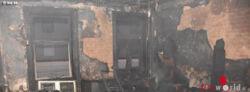 Fenster zerbarsten, Flammen und Rauch drangen in das Stiegenhaus und aus den Fenstern. Unter Atemschutz drangen die Feuerwehrleute mit einer Löschleitung in die stark verrauchte Brandwohnung vor. Durch die große Hitze war bereits der Verputz der Wände und der Decke abgeplatzt.