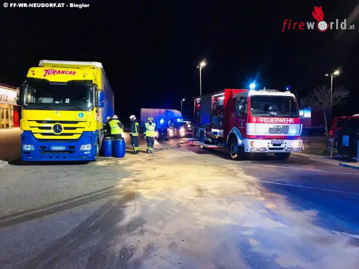 Auf einem Parkplatz in Fahrtrichtung Wien mussten rund 500 Liter Diesel aus dem undichten Tank eines Sattelschleppers abgepumpt werden. Die Wiener Neudorfer Einsatzkräfte rückten dazu mit dem Schadstoffzug auf die A21 aus.