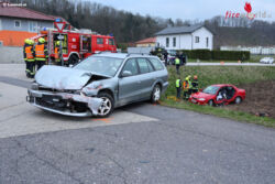 Die Feuerwehr stand Mittwochnachmittag bei einer Menschenrettung nach einem schweren Verkehrsunfall in Pucking im Einsatz. Auf der Traunufer- beziehungsweise Unteren Landstraße auf Höhe der Kreuzung mit der Picassostraße kollidierten aus bisher unbekannter Ursache zwei Autos. Ein PKW, welcher vom zweiten Unfallfahrzeug auf der Fahrerseite erfasst wurde, wurde über eine Böschung in ein Feld geschleudert. Die Feuerwehr musste aus diesem Auto eine Person mit dem hydraulischen Rettungsgerät befreien. Die Person wurde nach notärztlicher Erstversorgung ins Krankenhaus eingeliefert, der zweite Unfalllenker erlitt leichtere Verletzungen und wurde ebenfalls vom Rettungsdienst ins Krankenhaus gebracht.