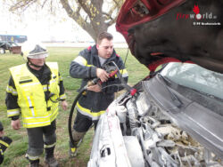 Bei Eintreffen der Feuerwehren waren nur noch Nachlöscharbeiten im glosenden Motorraum zu tätigen und ausgetretene Betriebsmittel zu binden. Nach ca. einer Stunde im Einsatz konnten die Feuerwehren dann wieder Einsatzbereitschaft melden.