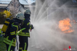 Erstmals konnte an einer mobilen Übungsanlage geübt werden. In den vergangenen Jahren musste man immer erst nach Dortmund fahren, um an einem solchen Training teilnehmen zu können. Daher war es nun erheblich praktischer, "zu Hause" üben zu können. Als Ausbilder standen Peter Kraft und Holger Krasemann von der Firma traicon-brandschutz zur Verfügung, beide mit langjähriger Berufserfahrung bei einer großen deutschen Berufsfeuerwehr und auch schon viele Jahre im Bereich der Heissausbildung unterwegs.