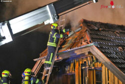 Die Feuerwehr wurde zu einem Brand alarmiert. Der Dachstuhl stand beim Eintreffen der Feuerwehr in Flammen. Die Bewohner des Hauses konnten sich rechtzeitig in Sicherheit bringen. Über dem Dach des Hauses stand eine dichte Rauchsäule. Der Schwerpunkt des Brandes lag ersten Angaben zufolge im Bereich des Dachstuhles. Die Innenräume wurden durch den Brand ebenfalls in Mitleidenschaft gezogen. Die Feuerwehr öffnete das Dach beziehungsweise den Dachstuhl an mehreren Stellen, um zum Brandherd vordringen und die Glutnester erreichen zu können. Verletzt wurde niemand.