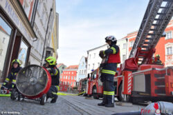 SCHÄRDING (OÖ): Die FF Schärding wurde am 2. April 2019 um 13:17 Uhr zu einem Brandverdacht am Unteren Stadtplatz alarmiert. Beim Eintreffen wurde dem Einsatzleiter Michael Hutterer mitgeteilt, dass sich in der Brandwohnung und im darüber liegenden 4. und 5. verrauchten Obergeschoß keine Personen mehr aufhalten.