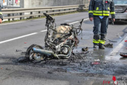 Oö: Motorrad nach Auffahrunfall in Ansfelden in Flammen