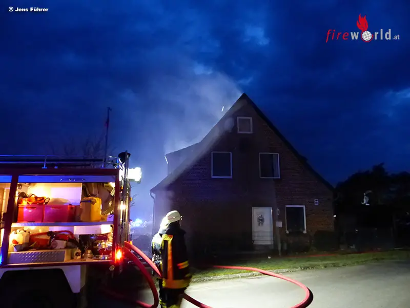 SÜDKAMPFEN, HEIDEKREIS (DEUTSCHLAND): Am Mittwochabend, dem 3. April 2019, wurde gegen 20:15 Uhr in Südkampen ein Gebäudebrand gemeldet. Als die Feuerwehren die Einsatzstelle erreichten, war eine starke Rauchentwicklung aus dem Dach festzustellen.