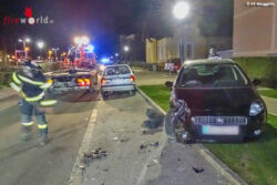 GLOGGNITZ (NÖ): Kurz nach Mitternacht wurde die Feuerwehr Gloggnitz am Donnerstag, dem 4. April 2019, zu einem Verkehrsunfall ins Stadtgebiet gerufen. Am Einsatzort wurden zwei beschädigte Fahrzeuge vorgefunden, eines davon zuvor geparkt, wobei der dieser Pkw im Grünstreifen zum Stillstand kam.