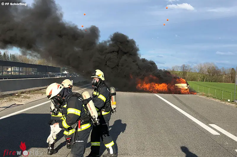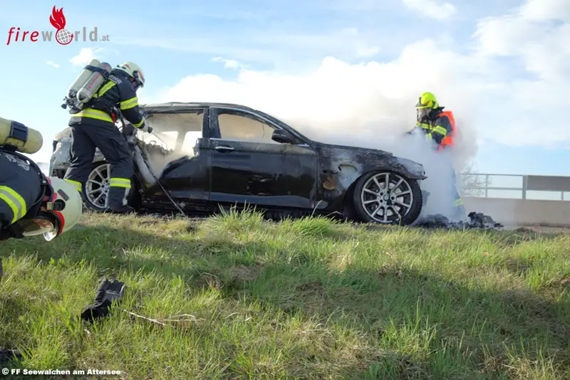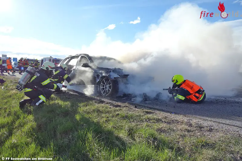 SEEWALCHEN (OÖ): Am Donnerstag, den 4. April 2019, wurden die Feuerwehren Seewalchen und Schörfling kurz vor 18 Uhr zu einem Fahrzeugbrand auf die A1, die Westautobahn, in Fahrtrichtung Wien alarmiert.
