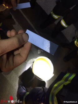 Sofort wurde die Einsatzstelle ausgeleuchtet und erste Proben vom Medium genommen. Parallel dazu wurde das mehrseitige Stoffdatenblatt durchgearbeitet. Ebenso wurden diverse Tests mit Proben durchgeführt. Zum Glück war der Stoff nahezu ph-Neutral und auch nicht direkt aggressiv.