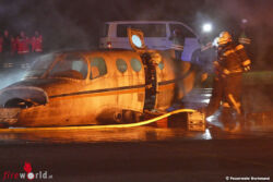 Bei der strukturierten Patientenablage ging es darum die Verletzten zu sammeln, in verschiedene Behandlungskategroien einzusortieren, zu versorgen und je nach Dringlichkeit abzutransportieren. Parallel zur Übung auf dem Vorfeld wurde im Terminal eine im laufenden Betrieb nicht zu realisierende Räumungsübung durchgeführt. Hierbei wurde auch die Brandmeldeanlage im Terminal ausgelöst. Hier mussten circa 80 Personen, die auf ihre ankommenden Angehörigen warteten, sich an Check-In Schaltern oder in den Caffees aufhielten, evakuiert und weiter durch PSNV-Kräfte betreut werden. Im vergangenen Jahr wurde ein neues Evakuierungskonzept entwickelt, dazu wurden Mitarbeiter zu Evakuierungshelfern ausgebildet und in dieser Übung die Abläufe geprüft. Der Wachleiter der Flughafenfeuerwehr zog nach der Übung ein überwiegend positives Fazit. Einige Übungskünstlichkeiten bleiben zu berücksichtigen, eine detaillierte Nachbesprechung wird in den nächsten Tagen stattfinden.