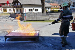 Bei der praktischen Übung mit Handfeuerlöschern konnten die jungen Feuerwehrleute echte Flammen löschen und die erlernte Theorie in die Praxis umsetzen. Ein herzlicher Dank gebührt an dieser Stelle der Firma Zerza Flüssig Gas GmbH, welche die gasbefeuerte Handfeuerlöscher-Übungsanlage kostenlos zur Verfügung stellte.