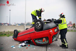 Nö: Pkw landet nach Verkehrsunfall am Dach auf dem SCS-Ring
