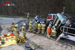 Das Übungsszenario war ein seitlich umgekippter Reisebus der zwei Pkw (einer davon am Dach liegend) unter sich begrub, es galt insgesamt sechs verletzte Personen zu retten. Nach einer kurzen Vormittagspause wurde das Szenario unter einsatznahen Bedingungen erfolgreich abgearbeitet, abschließend fand eine Besprechung der getroffenen Maßnahmen statt und es entwickelten sich interessante Diskussionen über die diversen Möglichkeiten und Methoden der Personenrettung.
