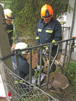 Oö: Feuerwehr befreit in Gittertor feststeckenden Rehbock