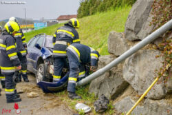 Durch die Wucht des Aufpralls erlitt der Lenker Verletzungen unbestimmten Grades, war jedoch entgegen ersten Informationen nicht im Fahrzeug eingeklemmt. Die Freiwillige Feuerwehr Gnas (Einsatzleitung) und die Feuerwehr Grabersdorf standen mit 22 Einsatzkräften und vier Fahrzeugen im Einsatz, versorgten den verletzten Lenker bis zum Eintreffen des Rettungsdienstes, stellten den Brandschutz sicher und führten im Anschluss die Bergung des Unfallfahrzeugs durch.